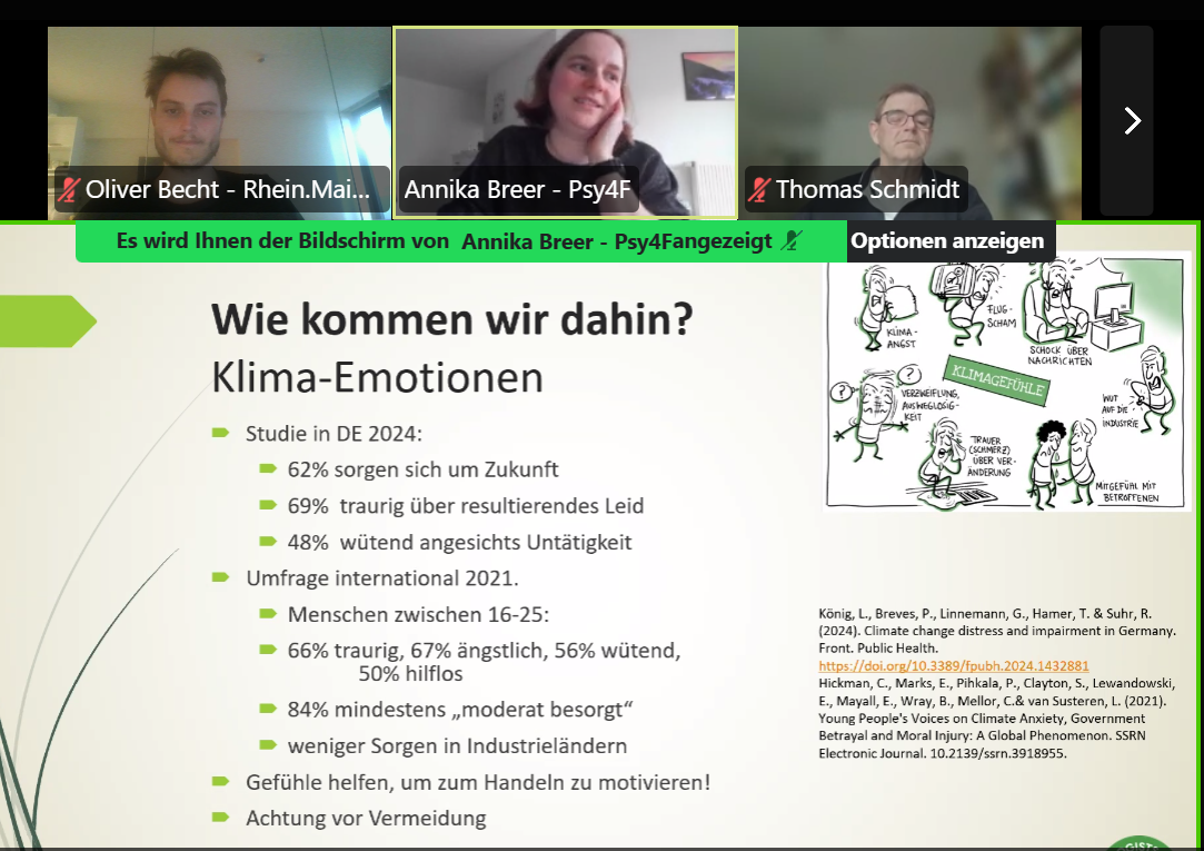 Aktuell werden die Herausforderungen der sozial-ökologischen Krisen immer größer, während die Unterstützung zu sinken scheint. Wie können wir trotzdem zufrieden und aktiv bleiben? Diese Frage stand im Mittelpunkt unserer Veranstaltung mit der Psychologin Annika Breer (Psychologists/Psychotherapists for Future). Für Breer ist die Antwort klar: Es braucht “Resilienz in Krisenzeiten”.