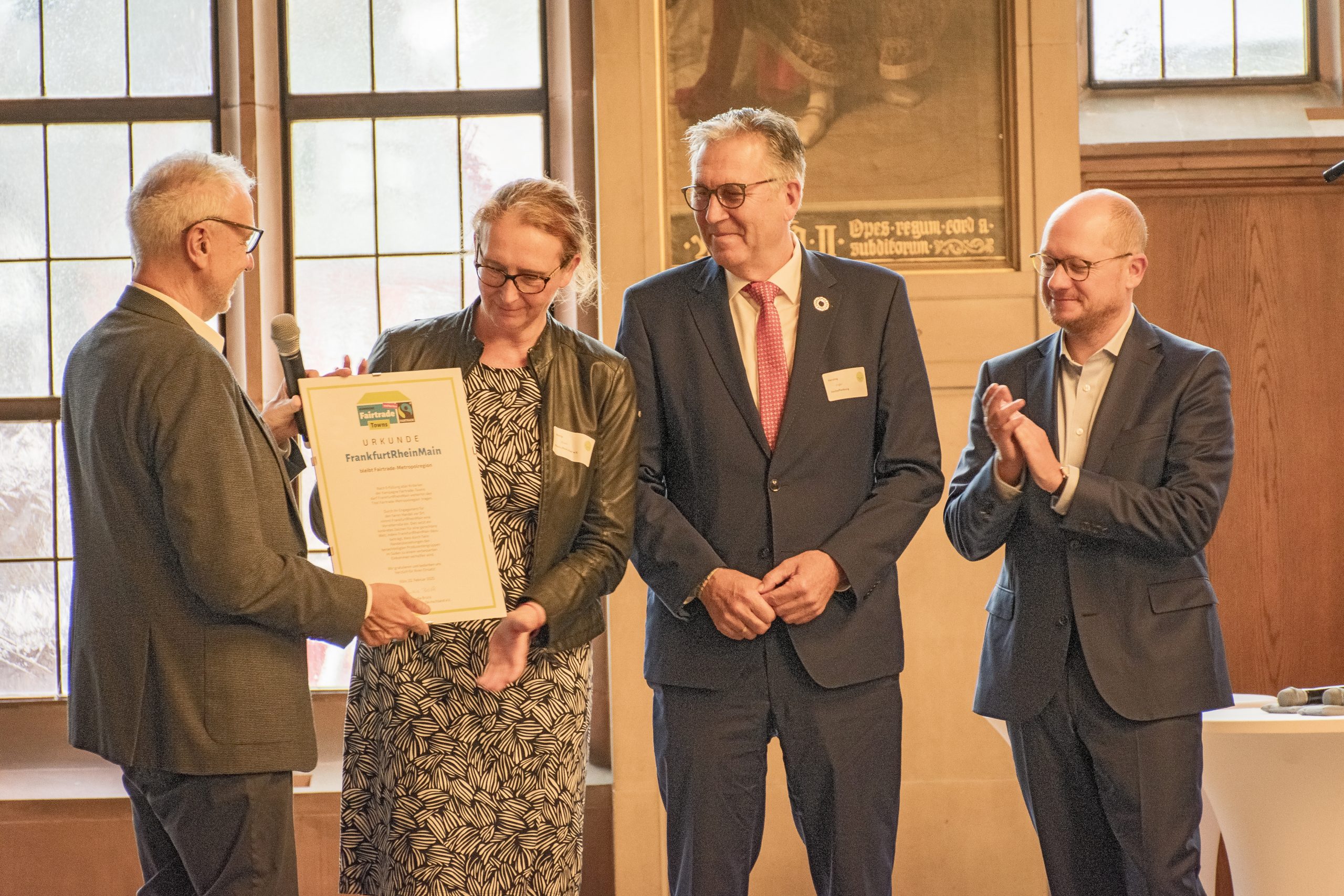Am 24. September 2025 gab es gleich doppelt Grund zum Feiern. Die Stadt Frankfurt und die Metropolregion FrankfurtRheinMain wurden im Kaisersaal im Römer erneut als Fairtrade-Kommune beziehungsweise Faire Metropolregion ausgezeichnet. Die Zertifizierung zeigt: Fairer Handel, globale Verantwortung und nachhaltiges Handeln sind feste Säulen in FrankfurtRheinMain.